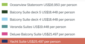In order to get the cabin of your preference the sooner, you book the better your chances of securing your choice of cabin category.
