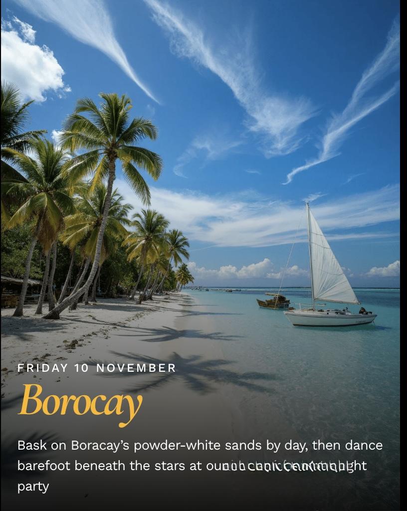 This is your invitation to explore the sweet spot between escape and exhilaration. Whether you want sun-soaked relaxation, seductive evenings under the stars, or immersive adventures on land, this journey offers the perfect balance of luxury, play, and pure exploration.