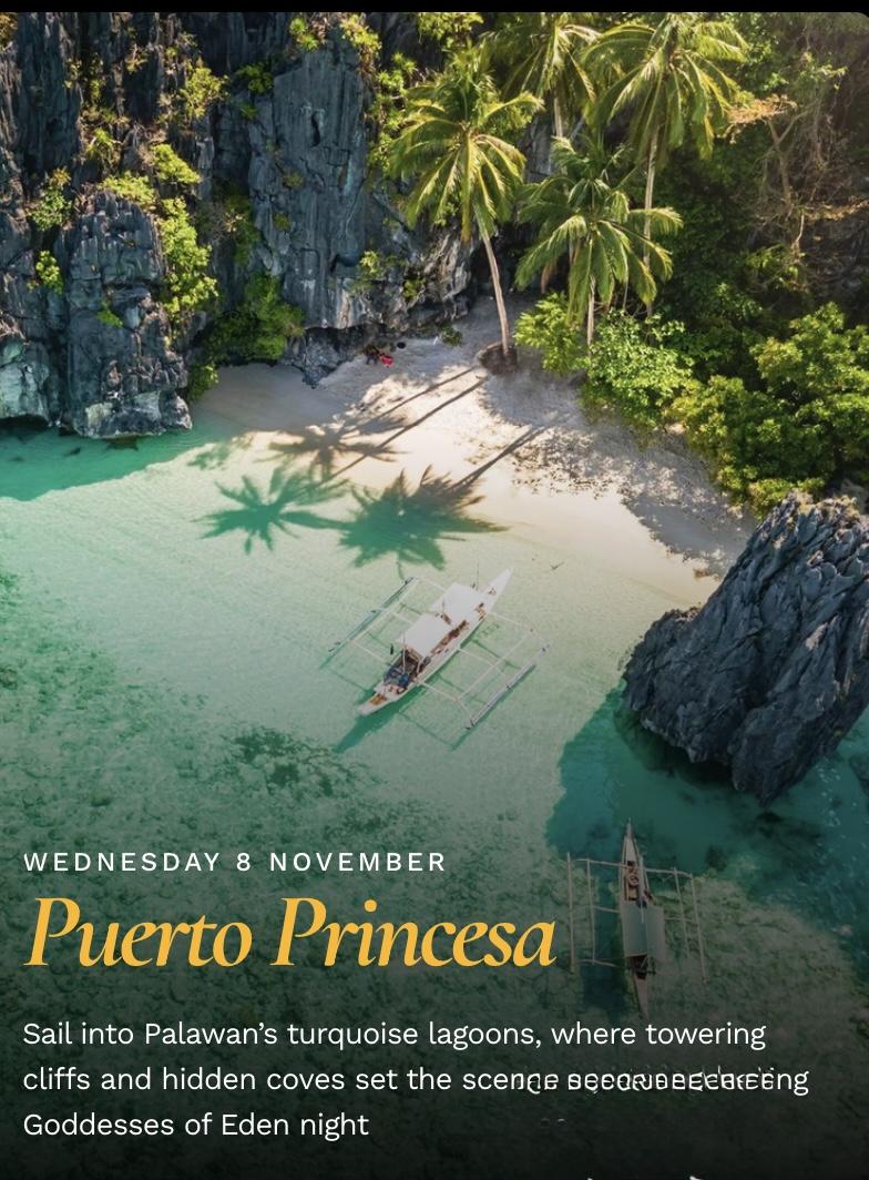 A voyage through culture & paradise – Discover a route filled with iconic coastlines, vibrant ports, hidden beaches and unforgettable scenery — where every stop offers a new flavour of Eden, and every return to the ship feels like coming home.